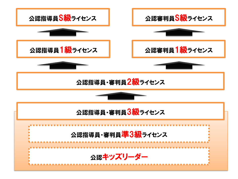 ライセンス取得をするには、すべての方が原則として3級ライセンス(準3級、公認キッズリーダー)から取得をしていただくことになります。